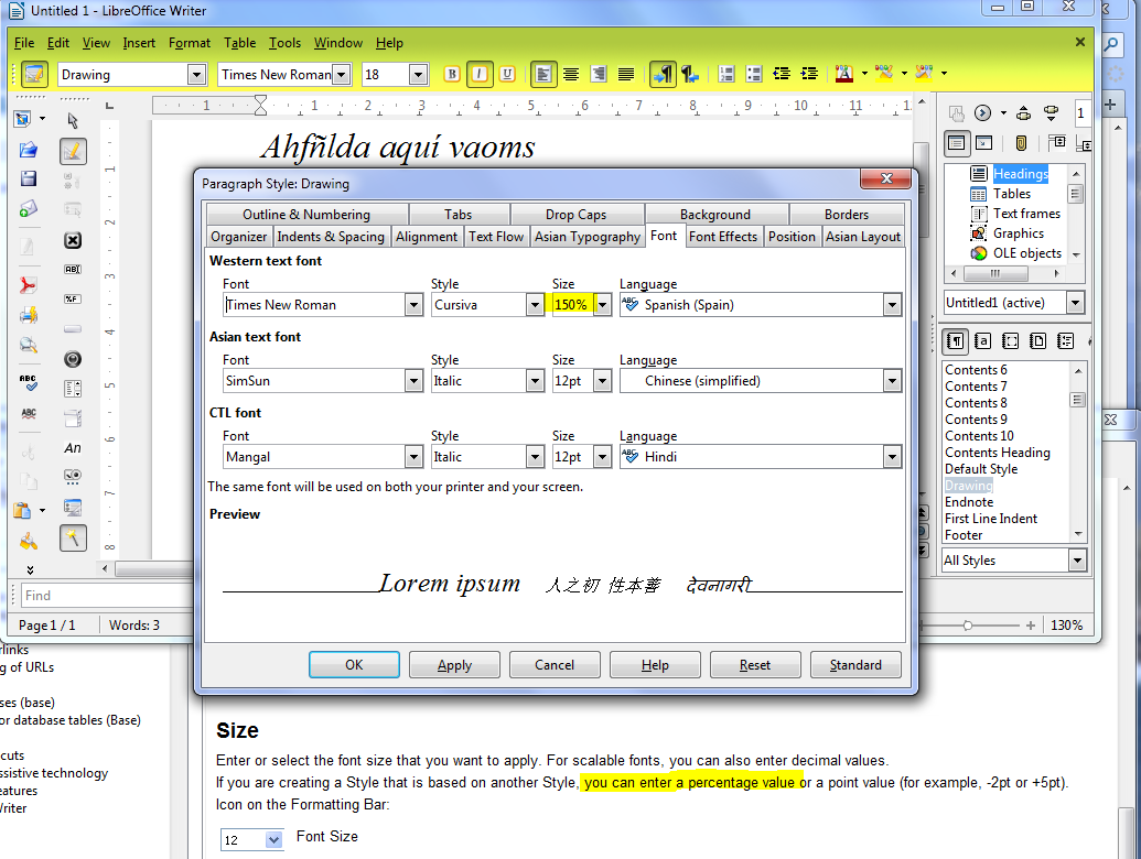 Created attachment 75139 [details] Screenshot about how to set a percent for the font size. Hi Jiero, Maybe not all what you want, but is possible to set a percent in the styles. See the attached screenshot.